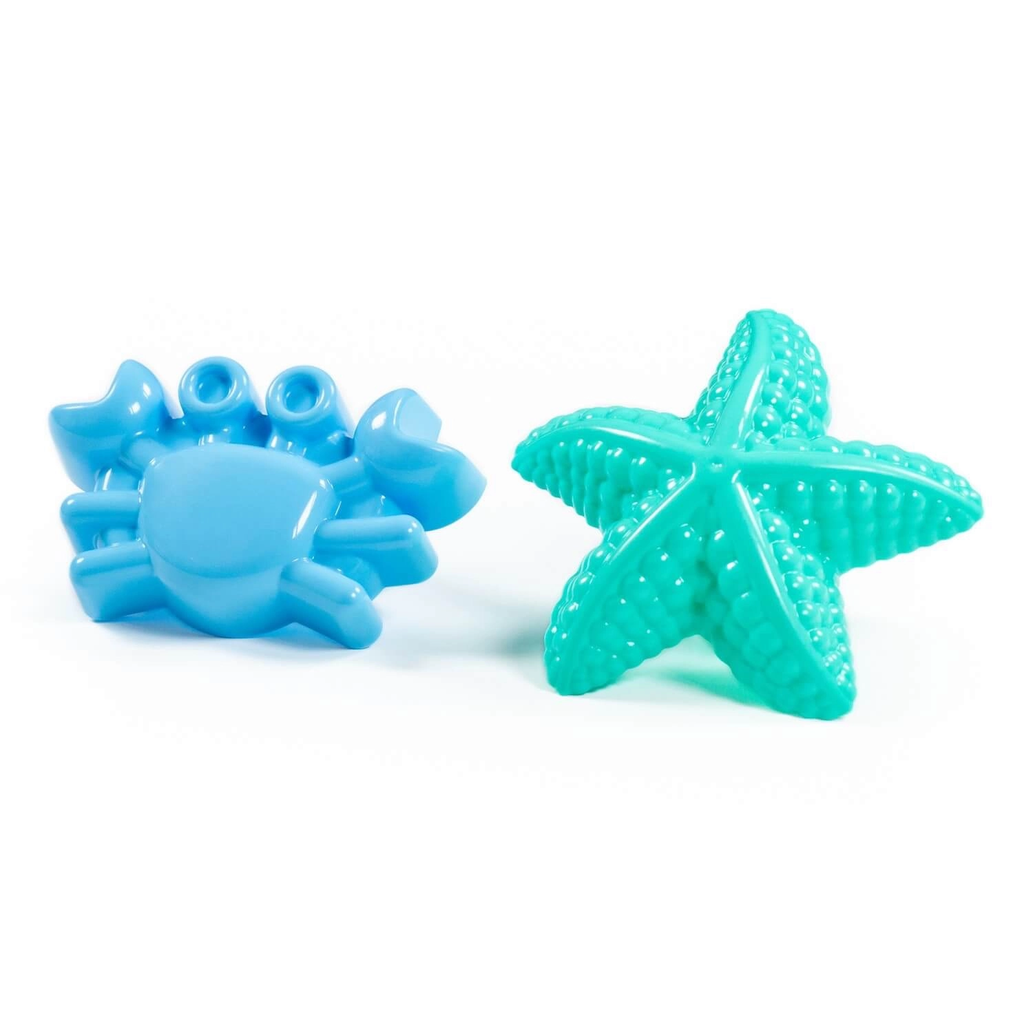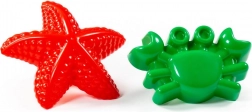 Setul conține două forme practice cu motive marine (de ex. stea de mare și crab), pe care copiii le pot apăsa ușor în nisip pentru a crea forme frumoase. Materialul este ușor de spălat și potrivit pentru joacă în aer liber sau acasă, în apă.