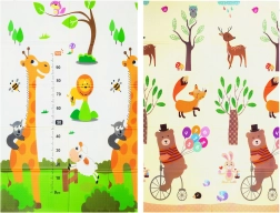 Schimbați motivele după dispoziție – animăluțe drăguțe pe o parte și girafe cu imprimeu de riglă pe cealaltă, pentru distracție și monitorizarea creșterii copilului.