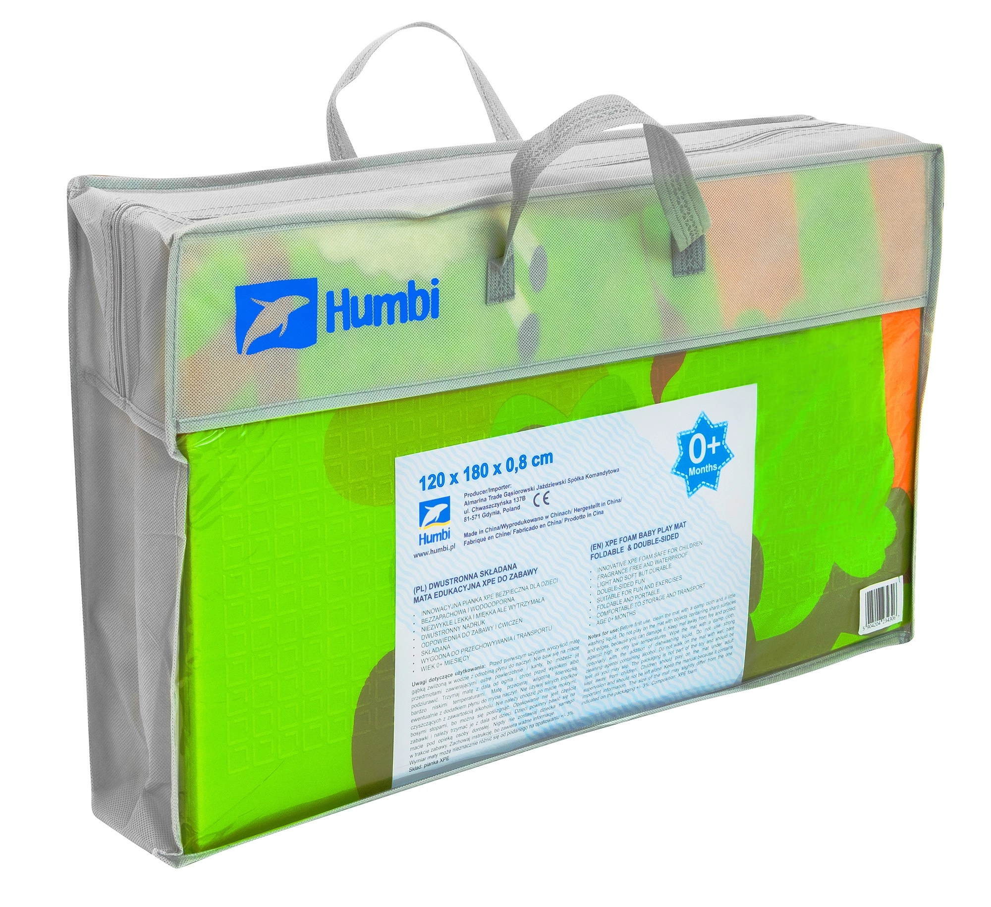 Descoperiți salteaua practică și stilată HUMBI, care creează un spațiu sigur și confortabil pentru joacă, odihnă și primele încercări de târâre. Dimensiunile 120 × 180 × 0,8 cm oferă suficient loc, în timp ce spuma XPE amortizantă protejează la căderi și izolează foarte bine frigul de la podea. Datorită designului dublă față schimbați cu ușurință aspectul încăperii – o parte cu animăluțe drăgălașe, cealaltă cu girafe și o riglă practică.