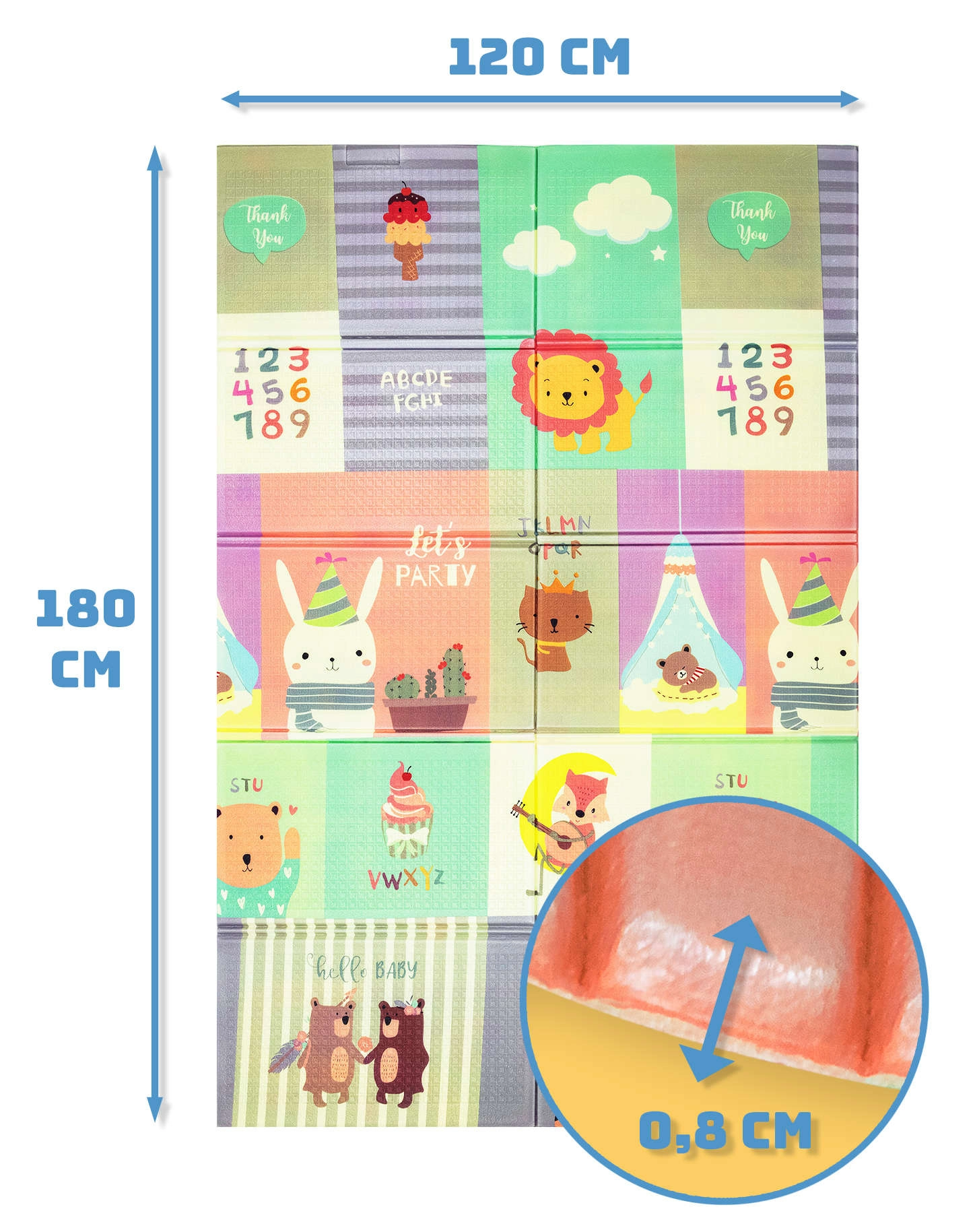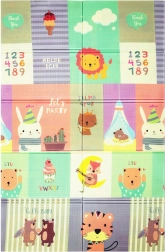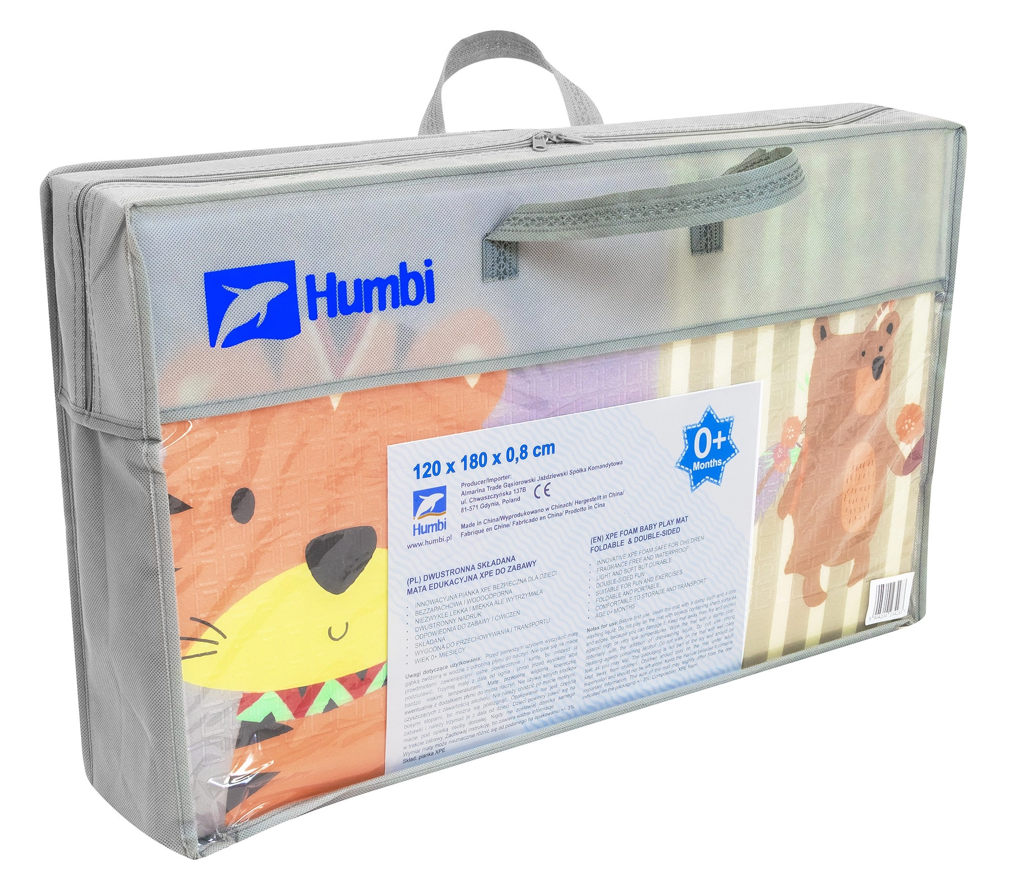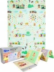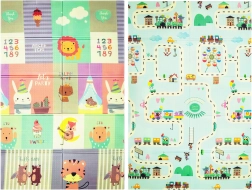 Salteaua de joacă HUMBI, din spumă XPE de calitate, este ideală pentru camera copilului, living sau grădină. Datorită grosimii de 0,8 cm, izolează excelent frigul de la podea și amortizează căderile. Designul dublu-față oferă pe o parte animăluțe în culori pastel, iar pe cealaltă străduțe colorate – perfect pentru distracție și stimularea simțurilor.