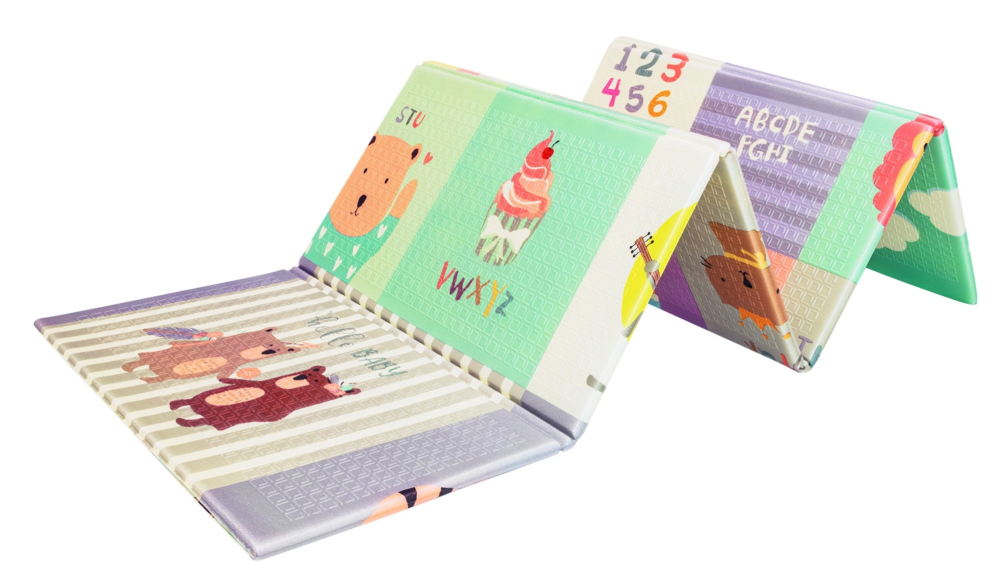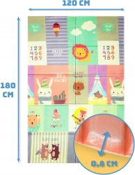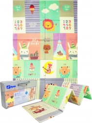 Salteaua este ușoară, se pliază rapid, iar datorită genții cu fermoar incluse o poți lua ușor în călătorii, la picnic sau pe balcon. Materialul XPE este fără miros, netoxic, rezistent la apă și ușor de întreținut – este suficient să o ștergi cu o cârpă umedă. Structura antiderapantă cu relief fin susține târâtul și mersul în siguranță și stimulează dezvoltarea senzorială.