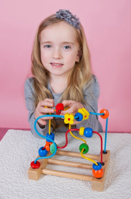 Labirintul pentru copii cu buburuză de la Bino este jucăria motrică ideală pentru început. Mărgelele colorate sub formă de animăluțe și flori se deplasează pe fire metalice deasupra unei baze din lemn, ceea ce susține răbdarea, concentrarea și dezvoltă abilitățile celor mici într-un mod ludic.