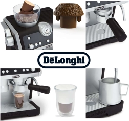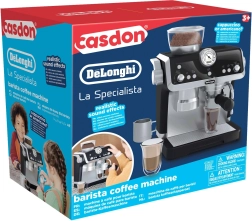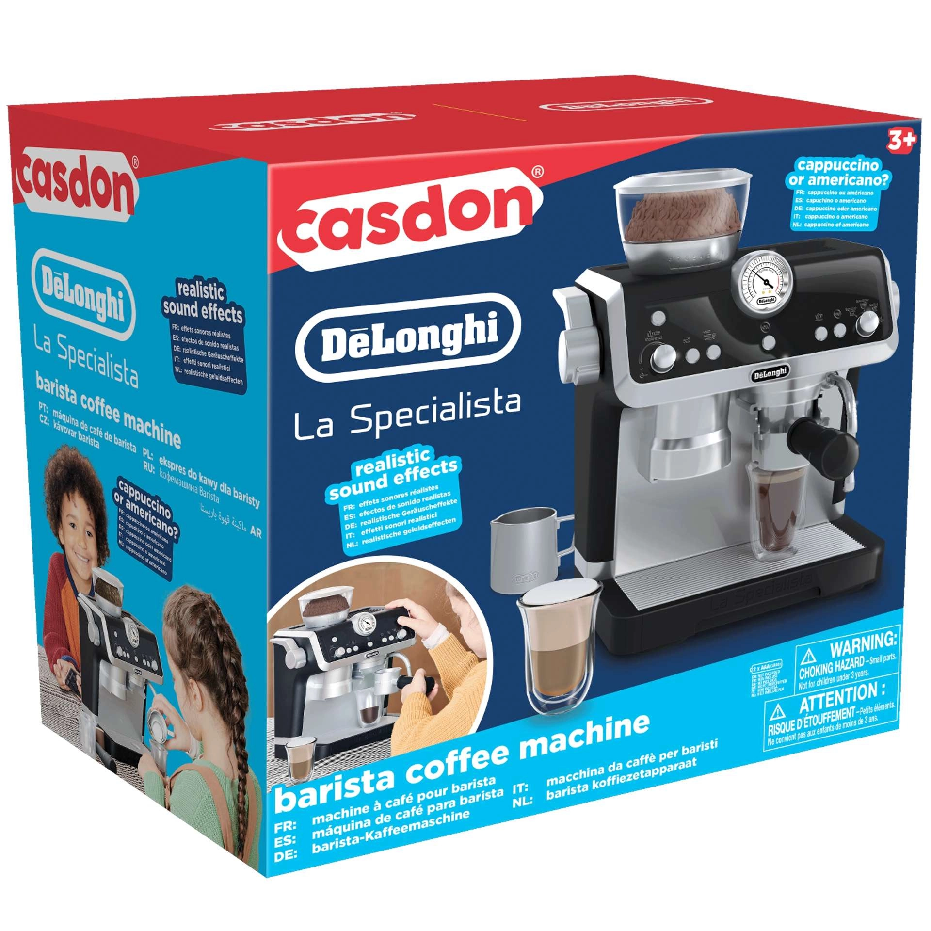 Deveniți un adevărat barista! Espressorul stilat pentru copii, licențiat De’Longhi de la CASDON, oferă măcinare realistă, pregătire espresso și spumare a laptelui cu efecte sonore. Include cești, cană pentru lapte și „cafea” și „lapte” pentru un joc și mai autentic – ideal pentru dezvoltarea imaginației și a coordonării copiilor de la 3 ani.