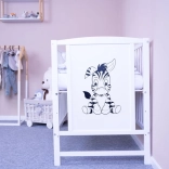 Funcțiile practice includ 3 poziții ale somierei (22/38/51 cm) pentru îngrijirea confortabilă a bebelușului și 3 bare demontabile, care îi facilitează copilului mai mare ieșirea independentă. Somiera și barele sunt fixate ferm, sunt plate și netede pentru siguranță maximă. Motivul drăguț cu zebră conferă pătuțului un aspect jucăuș.
