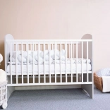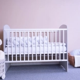 Pătuțul pentru copii New Baby Leo a fost conceput cu accent pe siguranță, confort și design modern. Cadrul din lemn masiv de pin cu bare plate solide și somiera cu 3 poziții de înălțime (22/38/51 cm) permit adaptarea la vârsta și nevoile copilului. Datorită celor 3 bare detașabile, copilul mai mare poate urca și coborî în siguranță fără a coborî laterala.