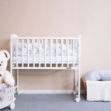 Pătuțul lateral practic pentru părinți New Baby Mateo oferă apropiere de bebeluș zi și noapte. Are 3 niveluri de reglare a înălțimii somierei, laterala rabatabilă și roți cu blocare pentru mutare ușoară. Este fabricat din lemn de pin de calitate cu lac pe bază de apă, sigur și respectă normele EN 716 pentru siguranță maximă.