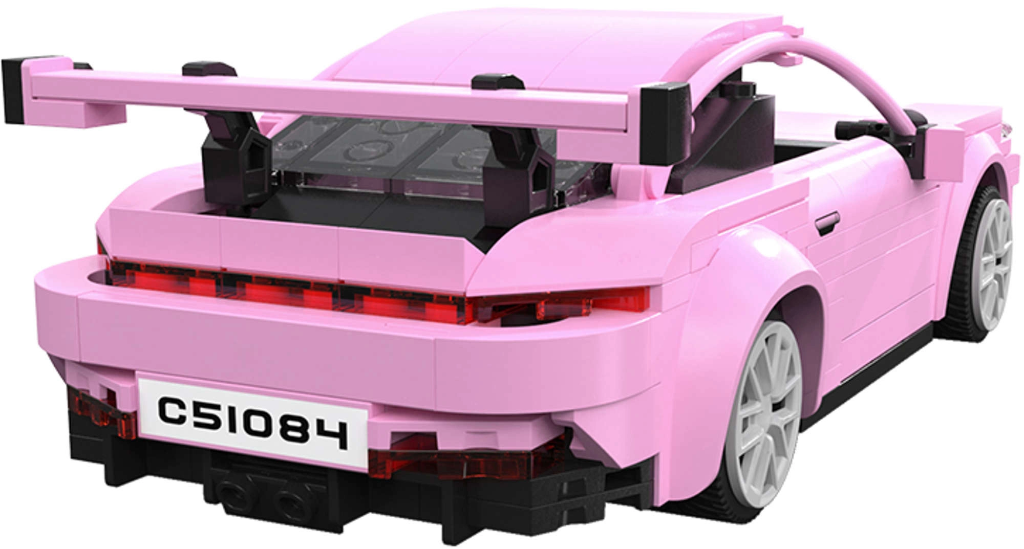 Caroserie roz, roți late, aripă spate și lumini realiste creează un aspect atrăgător și o ținută excelentă la rulare.