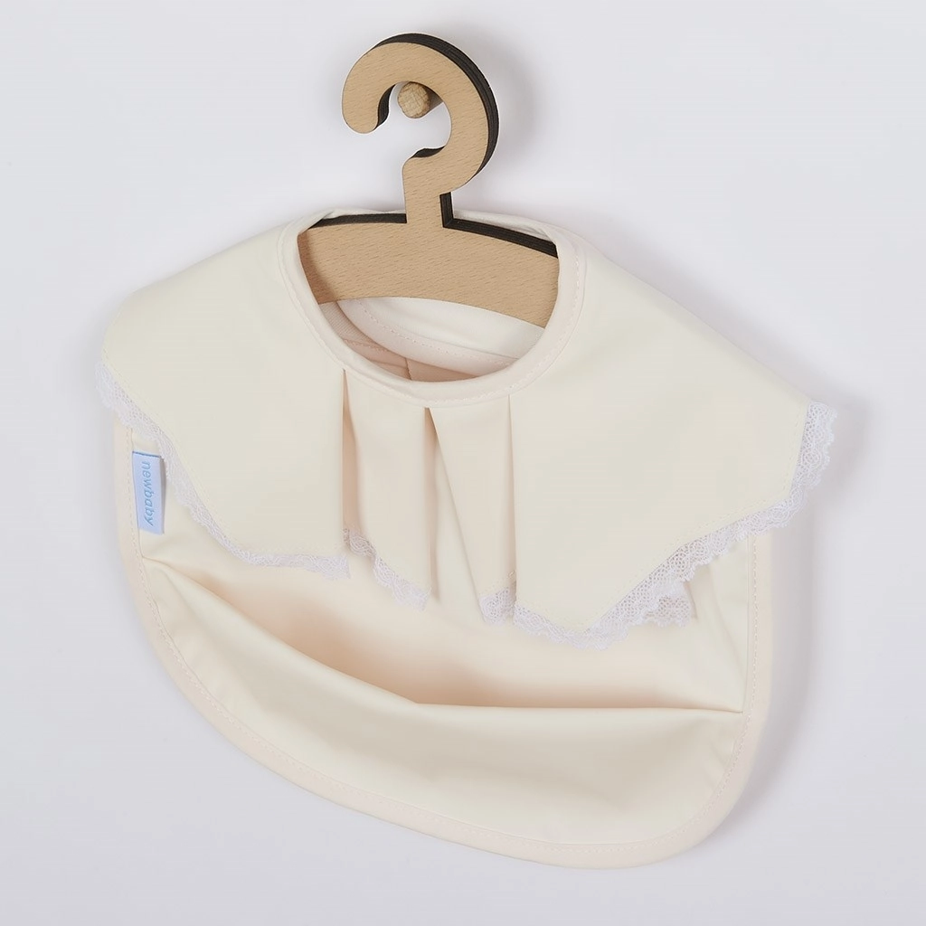 Bavețica practică și elegantă New Baby pentru fetițe protejează fiabil hainele în timpul mesei și al jocului. Este realizată din țesătură ușoară, moale și ușor de spălat, are închidere comodă cu scai și buzunar practic pentru colectarea firimiturilor. Designul stilat, cu dantelă și modele moderne, va încânta orice mică fashionistă.