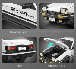 Acest set stilat CaDA aduce mașina urbană TOYOTA AE86 TRUENO inspirată de seria cult INITIAL D. La scara compactă 1:35 vei construi o mașină albă cu detalii negre și roți din cauciuc, care asigură rularea pe diferite suprafețe. Asamblarea este explicată clar în instrucțiuni pas cu pas, astfel încât modelul poate fi realizat și de constructori mai tineri cu ajutorul unui adult.