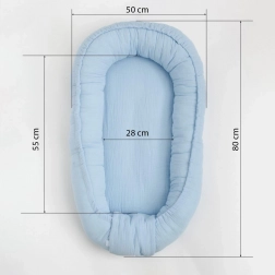 Cuibul din muselină New Baby este confecționat dintr-o țesătură de bumbac deosebit de fină, plăcută pentru pielea sensibilă a copilului. Oferă bebelușului un spațiu intim, delimitat, datorită căruia se simte în siguranță și aproape de mamă. Cuibul se transportă ușor, astfel încât micuțul tău poate să se odihnească în mediul său familiar și în timpul călătoriilor.