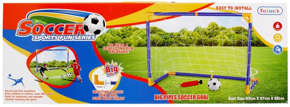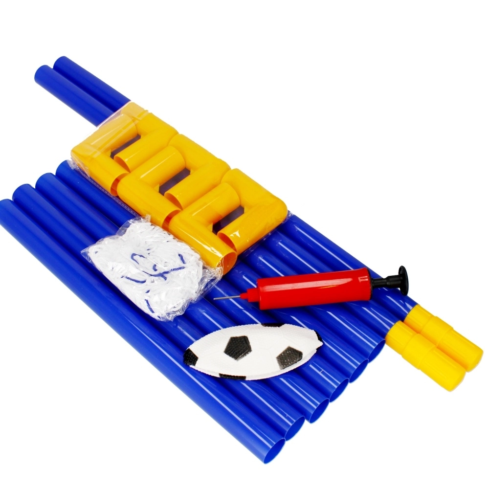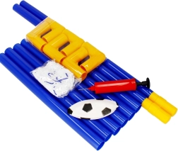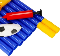 Setul este livrat ca pachet complet: poartă din țevi de conectare, plasă, mingiuță și pompiță manuală. Picheții asigură stabilitatea porții pe iarbă, iar plasa rezistentă prinde în siguranță fiecare gol. Excelentă pentru dezvoltarea coordonării, mișcării și spiritului de echipă.