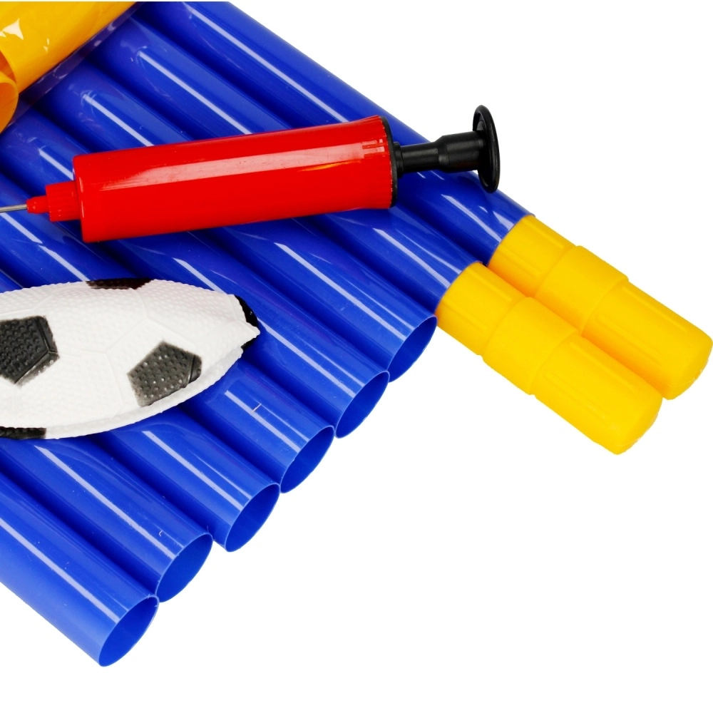 În pachet găsești poarta, plasa, mingea, pompița manuală și picheții – doar asamblezi și poți începe jocul.