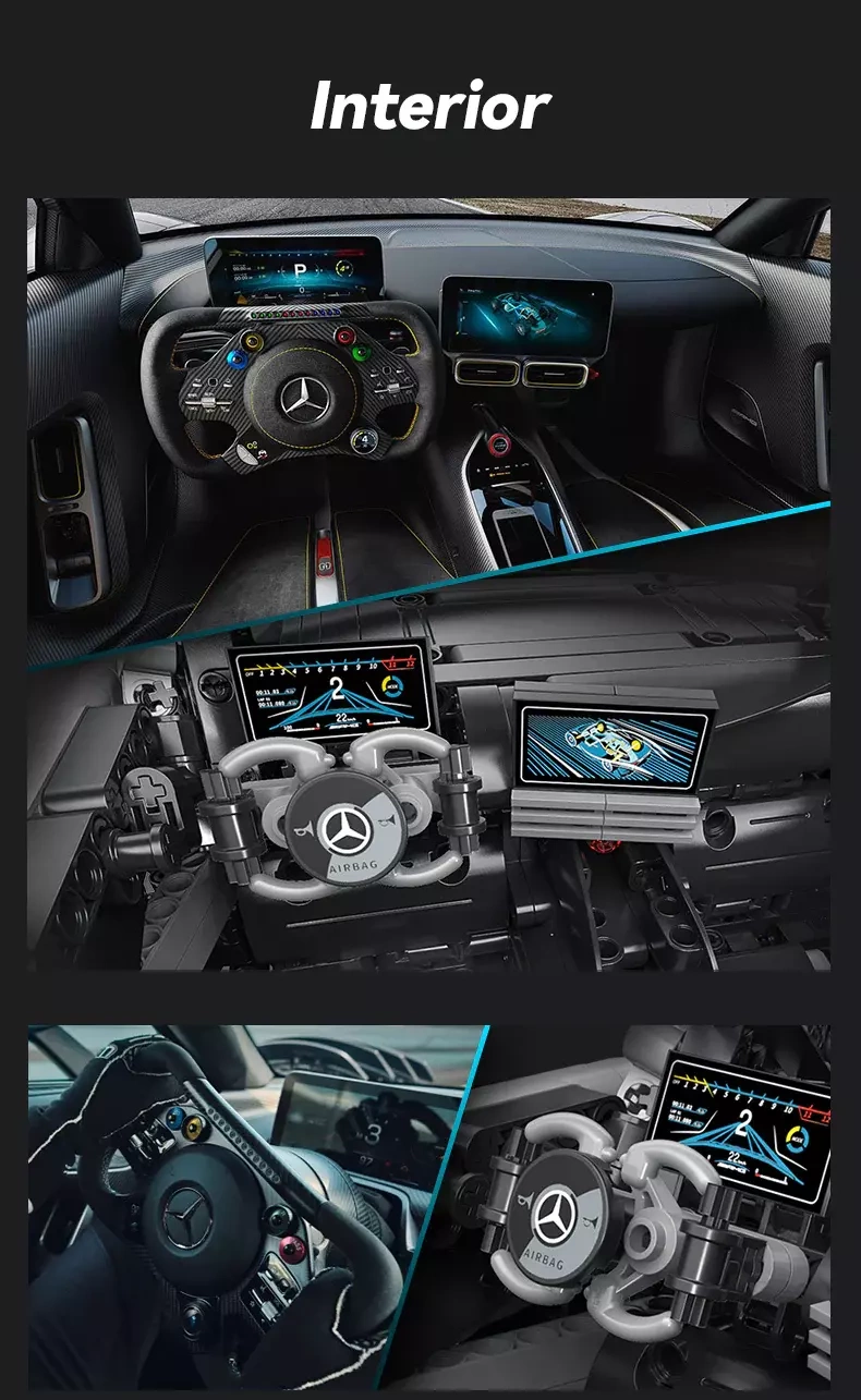 Construiește hypercarul iconic MERCEDES‑AMG ONE la scară 1:8 din setul premium CaDA Master. Modelul cu 3295 piese oferă control RC 2,4 GHz, uși tip aripă rabatabile, suspenție independentă pe toate roțile, un motor V6 realist și lumini LED. Execuție de top, caroserie detaliată și anvelope MICHELIN omologate fac din acest set o piesă de colecție și un cadou perfect.
