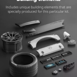 - Cărămizi și accesorii, motoare, servo, LED, cabluri de prelungire (4×), acumulator, telecomandă RC, instrucțiuni