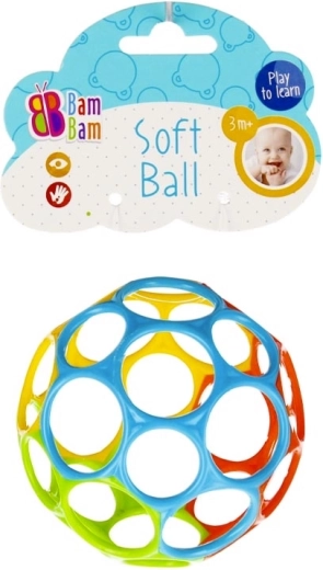 Mingea colorată din cauciuc Bam Bam este o jucărie grozavă pentru bebeluși de la 3 luni. Susține dezvoltarea motricității fine și grosiere, este ideală pentru aruncat, rostogolit și joacă în apă. Datorită materialului plăcut și diametrului de 10 cm, se ține ușor cu mânuțele mici.