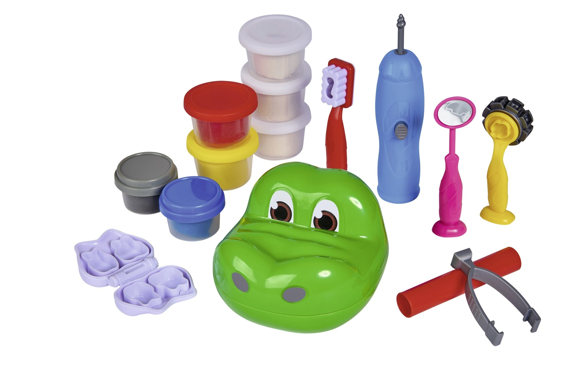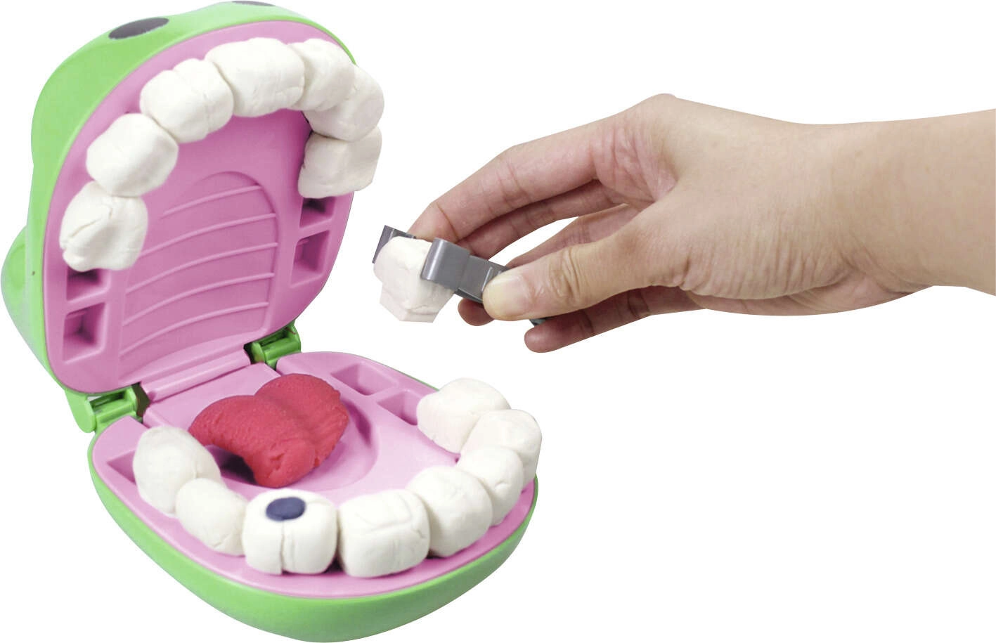 Acest set stomatologic cu crocodil oferă o simulare realistă, dar jucăușă, a tratamentului dentar. Datorită accesoriilor bogate, copiii pot modela dinți noi din plastilină, repara carii, realiza plombe și monta aparate dentare colorate. Sunt incluse și o periuță și o oglindă pentru exersarea unei îngrijiri corecte a igienei orale.