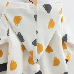Această salopetă sport stilată NEW BABY Little One îi va încânta atât pe părinți, cât și pe cei mici. Fermoarul pe toată lungimea facilitează îmbrăcarea, în timp ce gluga cu căptușeală colorată și pomponul adorabil adaugă un plus de farmec. Vă veți îndrăgosti de imprimeul integral cu ursuleți de la prima vedere.