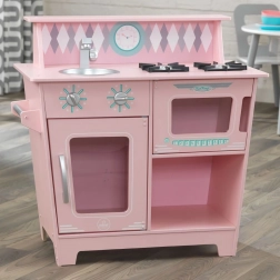 Bucătăria pentru copii KidKraft oferă multe funcții care dezvoltă imaginația copiilor. Este echipată cu chiuvetă, aragaz multifuncțional și cuptor cu microunde. Plitele detaliate și butoanele rotative care fac sunete de clic contribuie la trăirea unui joc realist.