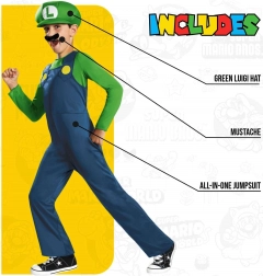Transformă-te în câteva clipe în îndrăgitul erou Luigi din lumea Super Mario. Acest costum licențiat oficial oferă purtare confortabilă și un aspect autentic, pe care copiii îl vor aprecia la orice distracție sau carnaval școlar.