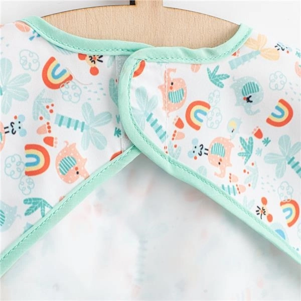 Închiderea cu arici facilitează îmbrăcarea și dezbrăcarea rapidă, iar buzunarul frontal moale prinde firimiturile și picăturile. Șorțul este potrivit pentru hrănire, mâncat independent și activități creative. Modelele moderne și culoarea verde îi vor încânta atât pe copii, cât și pe părinți.