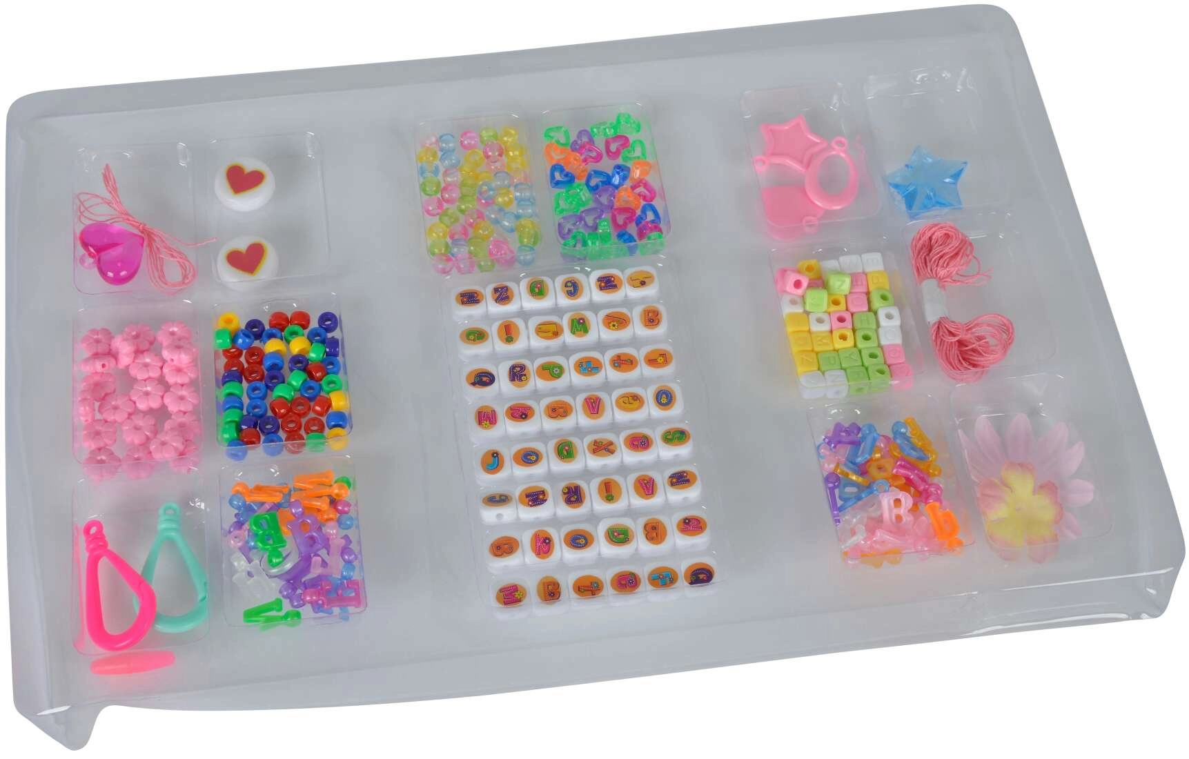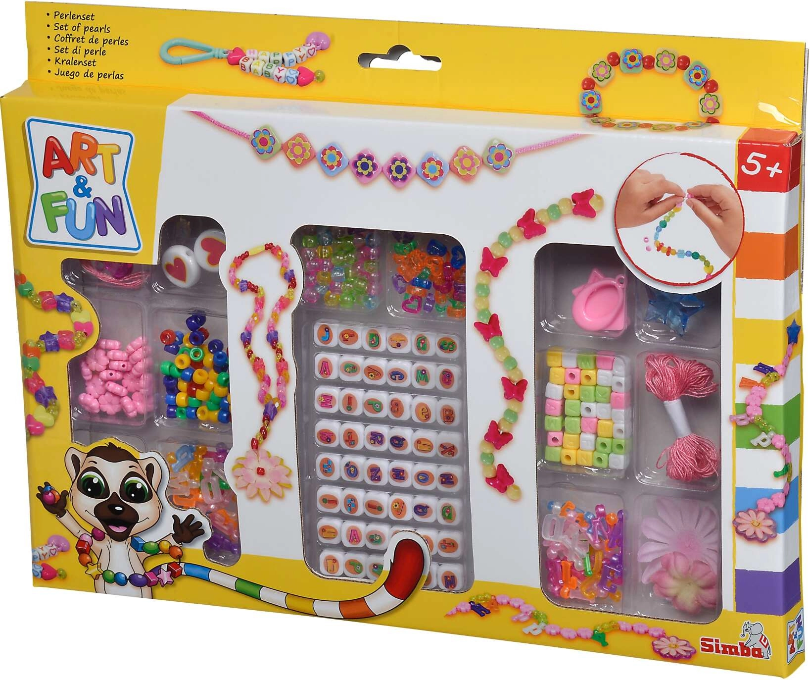 Descoperă lumea creativă cu setul pentru copii de realizare a bijuteriilor SIMBA ART & FUN. În pachet găsești mărgele colorate, cuburi cu litere, șnur și pandantive pentru a crea brățări și coliere originale. O alegere grozavă pentru dezvoltarea motricității fine, a creativității și a simțului estetic la copiii de la 5 ani în sus.