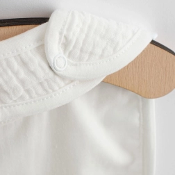 Bavețica din muselină, stilată și practică, New Baby Elizabeth protejează hăinuțele bebelușului în timpul hrănirii și al salivării. Este confecționată din muselină din 100% bumbac, care este respirabilă, delicată cu pielea și rezistentă la spălări frecvente. Datorită închiderii cu două mărimi, se adaptează ușor copilului în creștere.
