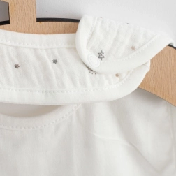 Muselina este una dintre cele mai fine și rezistente țesături – rezistă la spălări repetate și în timp devine și mai moale și plăcută. Această bavetă este o alegere excelentă pentru utilizarea zilnică acasă și în călătorii.