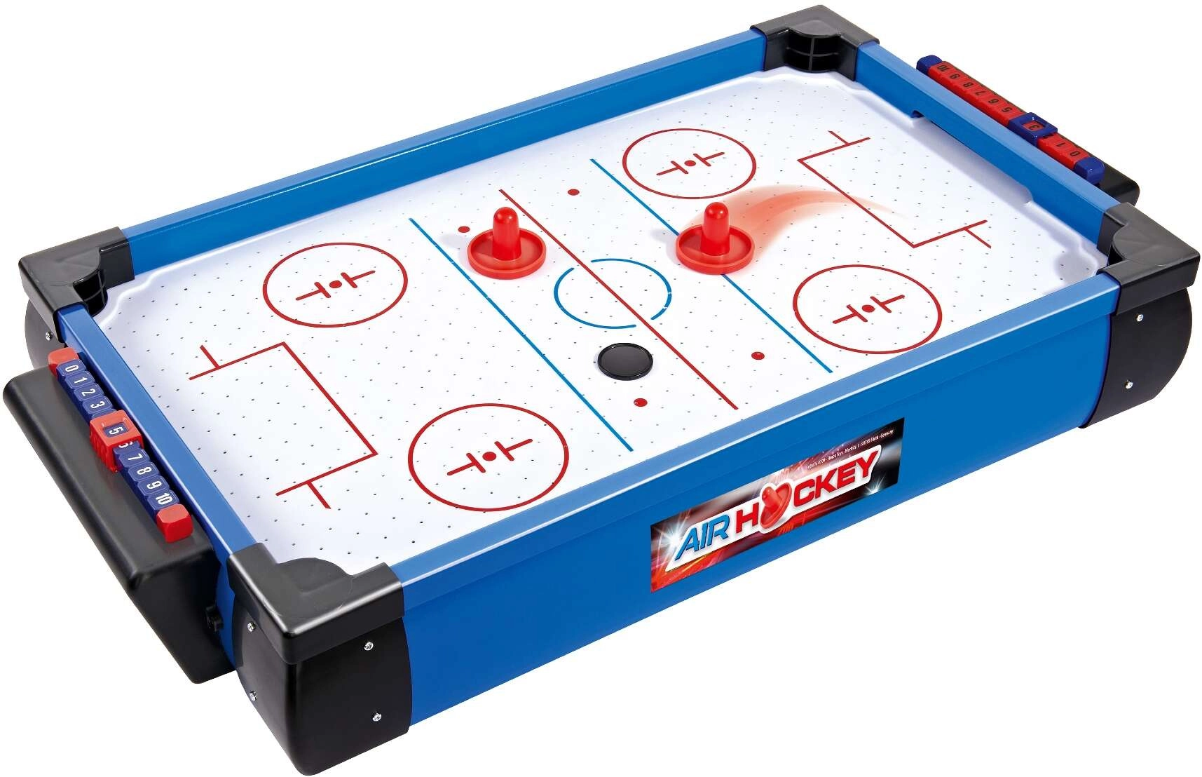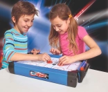 Bucurați-vă de îndrăgitul cymbergaj într-o versiune mini portabilă, care respectă fidel regulile air hockey-ului clasic. Porțile și pucurile mai mici fac jocul dinamic și captivant, iar contoarele manuale de deasupra porților permit urmărirea rapidă a scorului. Ideal pentru turnee scurte cu prietenii și familia.