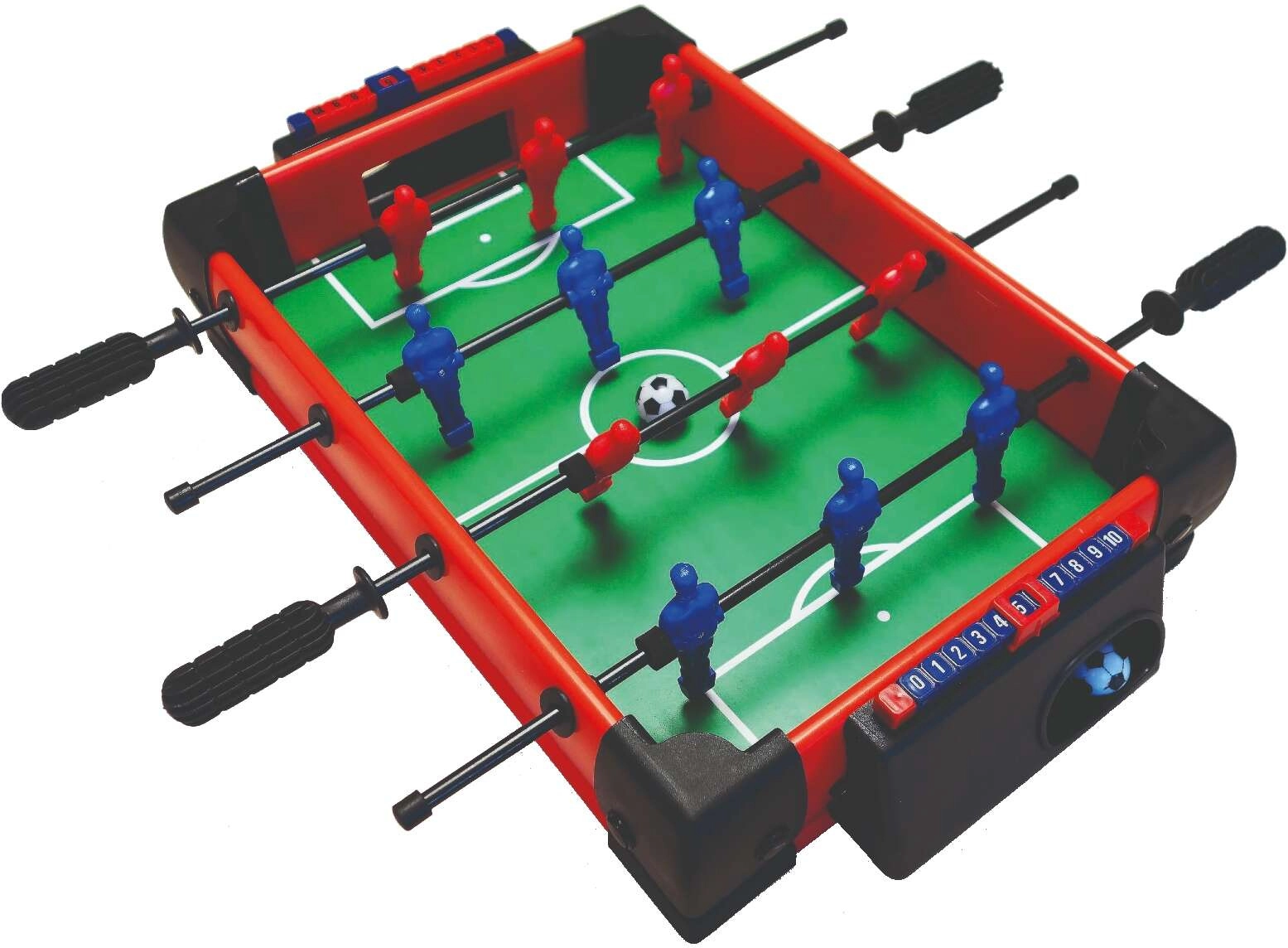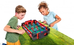 Datorită dimensiunilor compacte de 50 × 30 cm, fotbalul de masă încape pe masa din camera copilului sau în living. 12 jucători pe tije și 2 portari glisanți permit un joc rapid, iar mânerele se rotesc la 360° pentru șuturi și pase precise. Contorul de scor păstrează evidența rezultatului fiecărui meci.