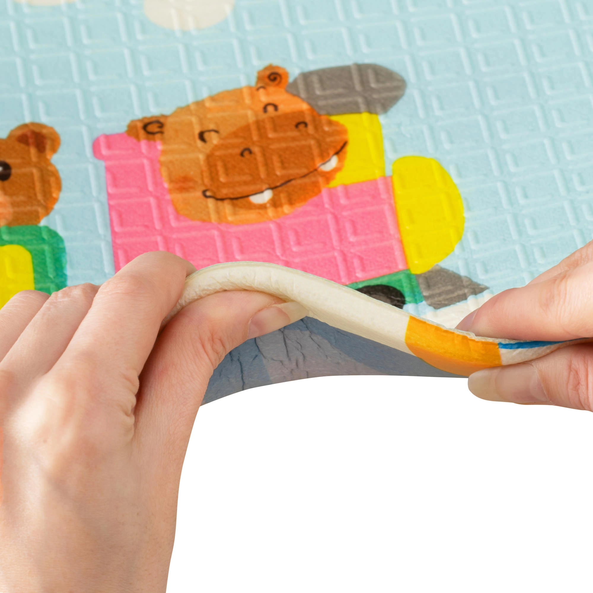 Salteluța HUMBI este fabricată din spumă XPE premium, inodoră, netoxică și cu absorție excelentă a șocurilor. Datorită grosimii de 0,8 cm, oferă izolație termică față de podeaua rece și un confort plăcut pentru joaca de zi cu zi. Stratul texturat antiderapant susține motricitatea sigură și stimulează delicat dezvoltarea senzorială.