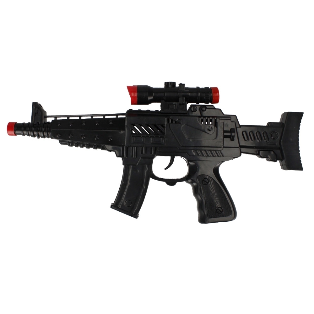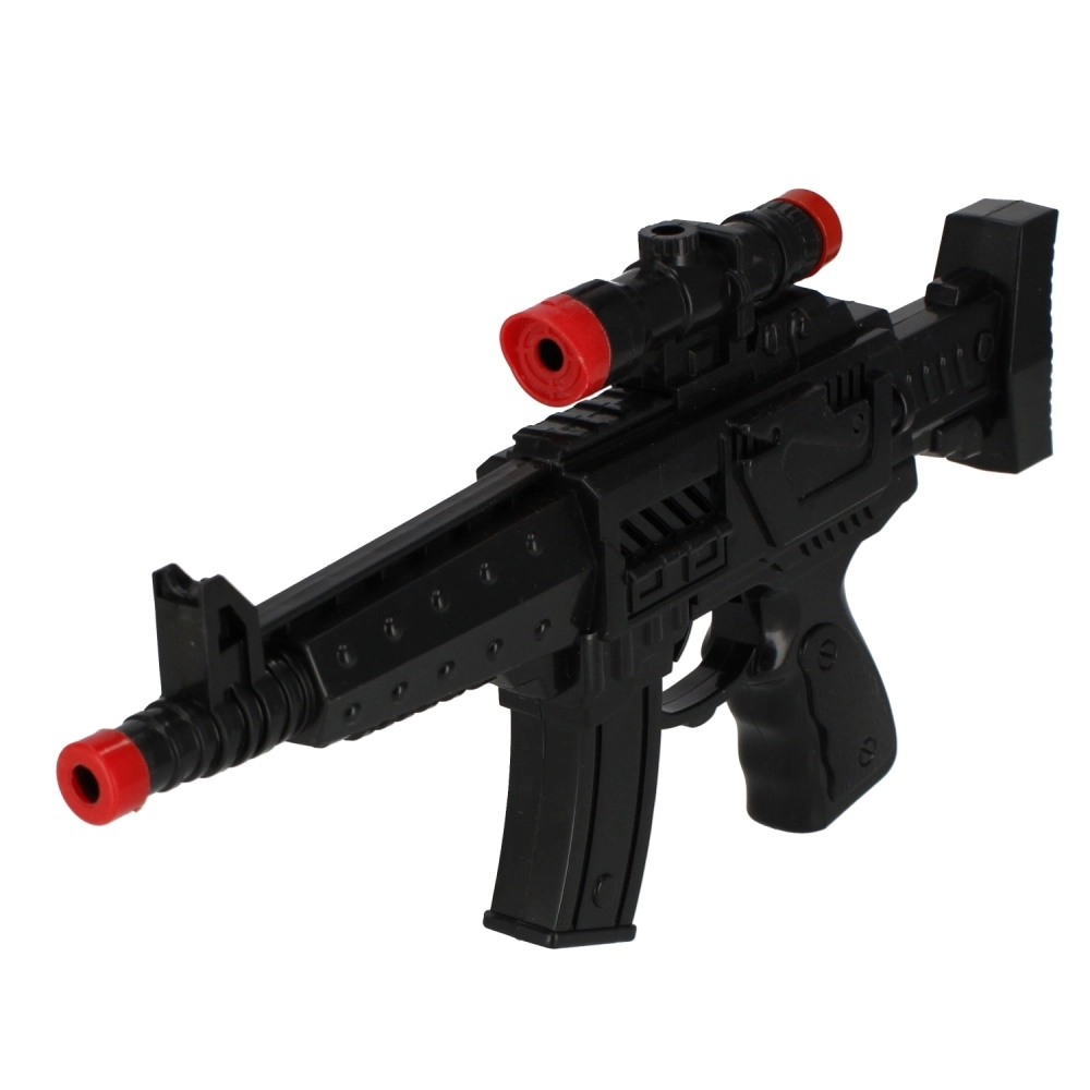 La apăsarea trăgaciului se activează un sunet puternic de împușcare, care intensifică atmosfera jocului de acțiune și stimulează imaginația copiilor.