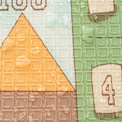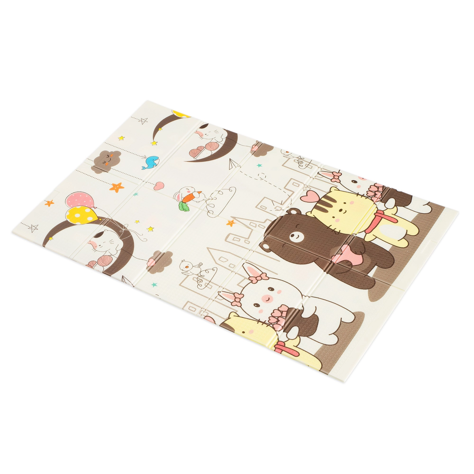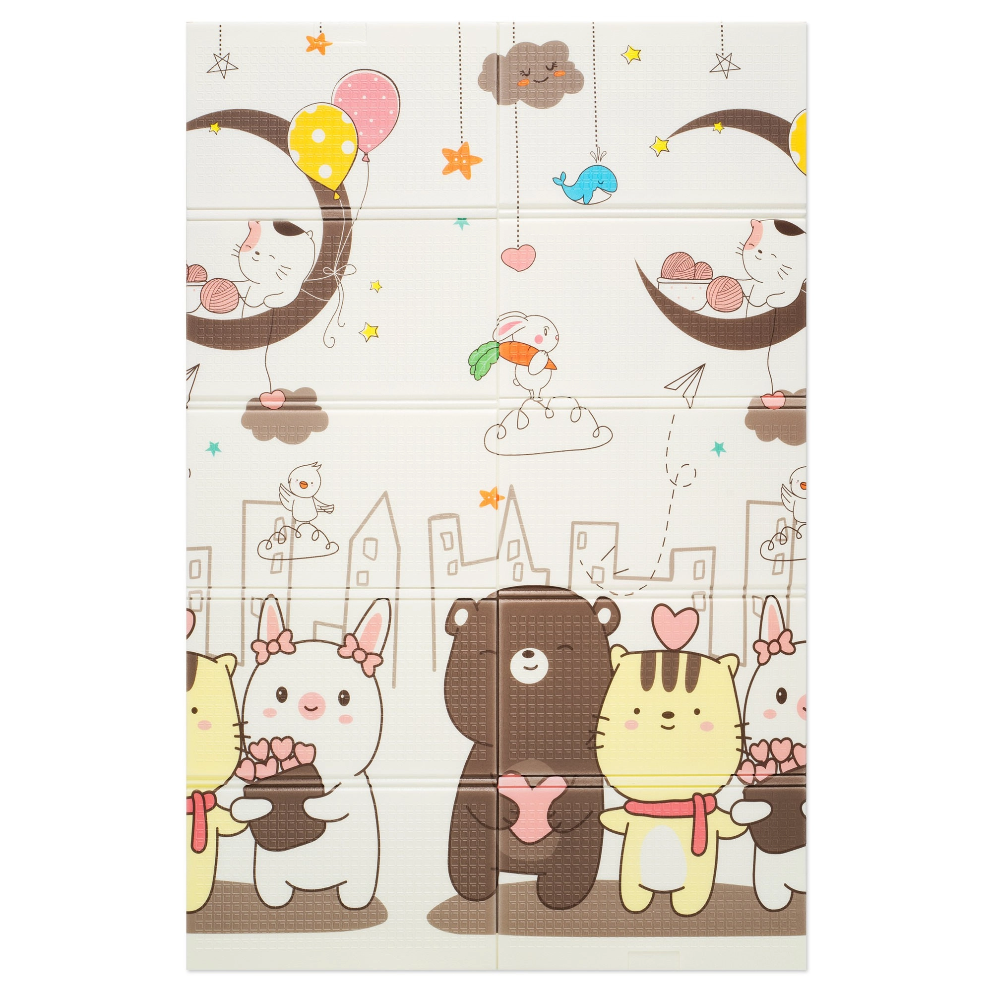 Fiecare parte are un imprimeu diferit – animăluțe, căsuțe și numere. Stimulează curiozitatea, învățarea și se potrivește frumos în orice interior.
