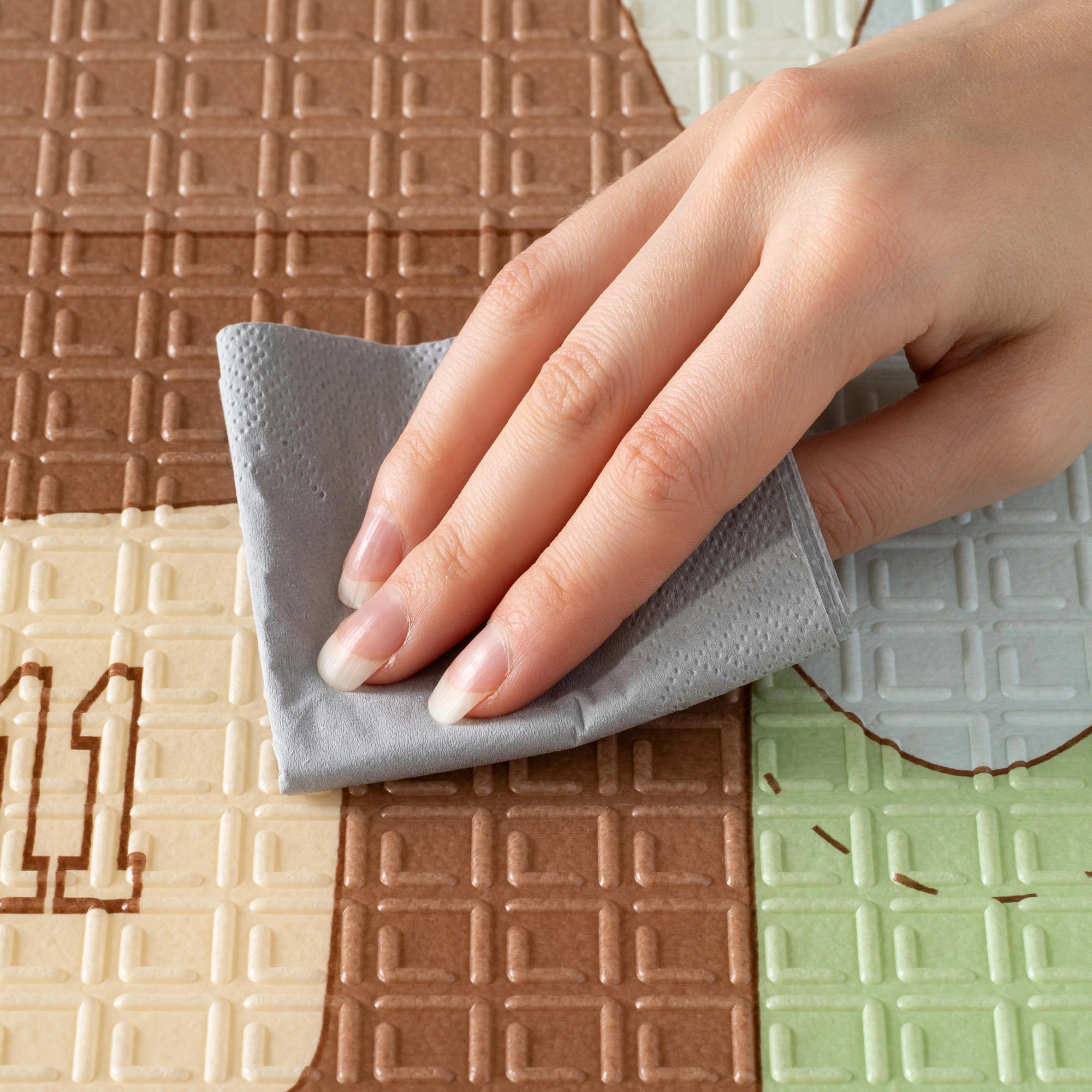 Spuma XPE groasă și elastică oferă amortizare excelentă la căderi și izolație termică față de podeaua rece. Este inodoră, netoxică și ușor de curățat.