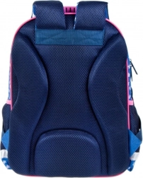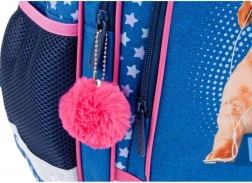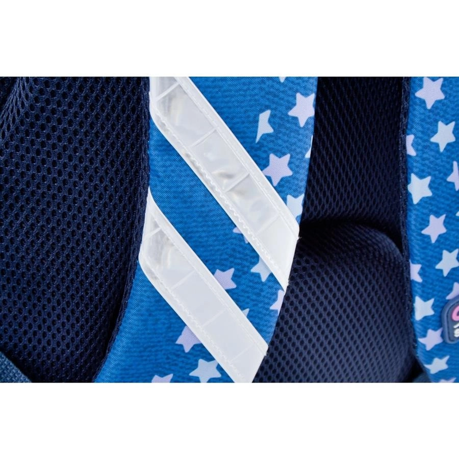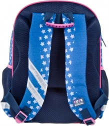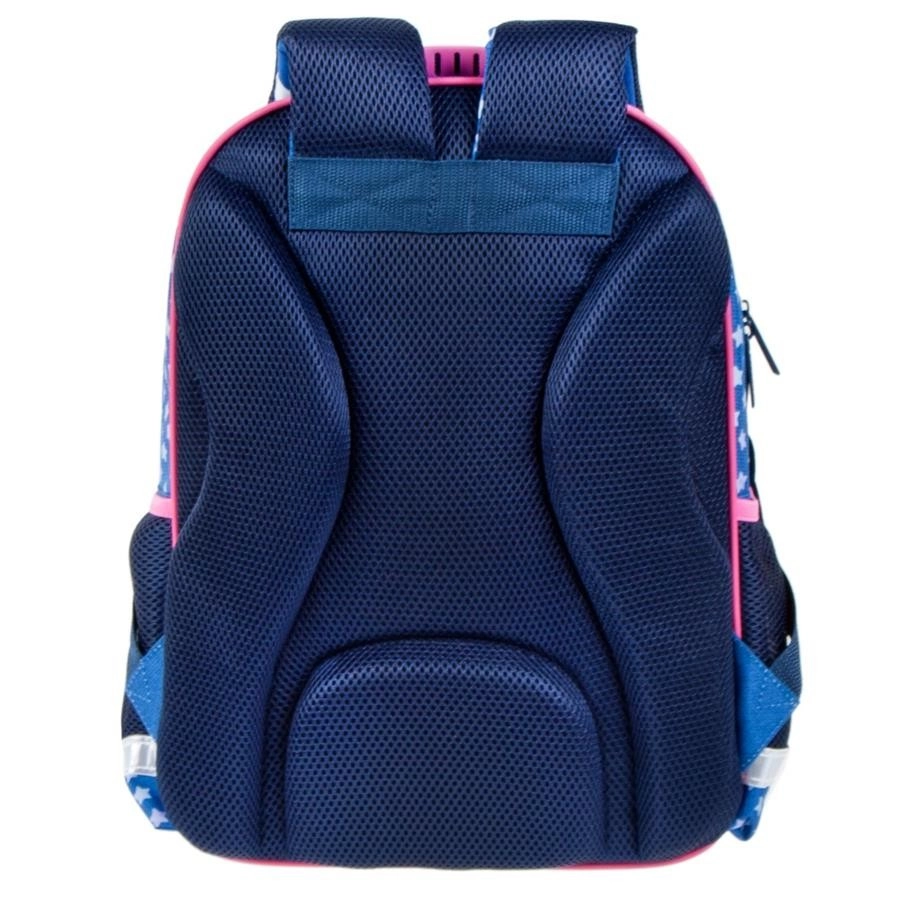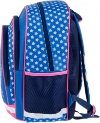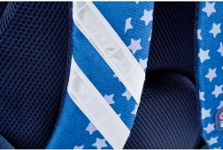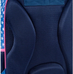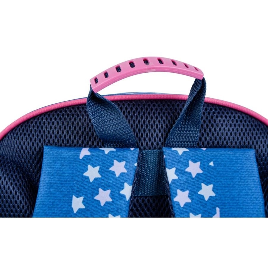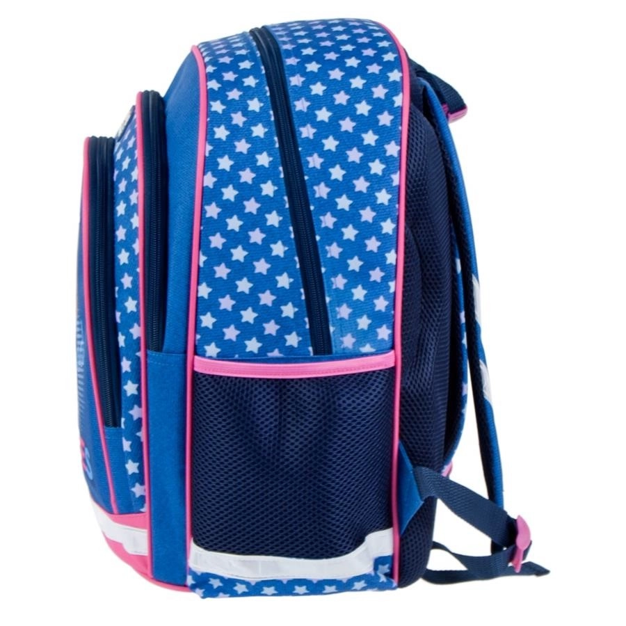 Acest rucsac pentru copii, în combinație bleu-roz, impresionează prin designul jucăuș cu steluțe și încântă prin practicitate. Compartimentul principal găzduiește manuale, dosare și gustarea, în timp ce cele două buzunare frontale facilitează organizarea obiectelor mici. Buzunarele laterale din plasă transportă în siguranță sticla cu apă, astfel încât tot ce e necesar să fie mereu la îndemână.