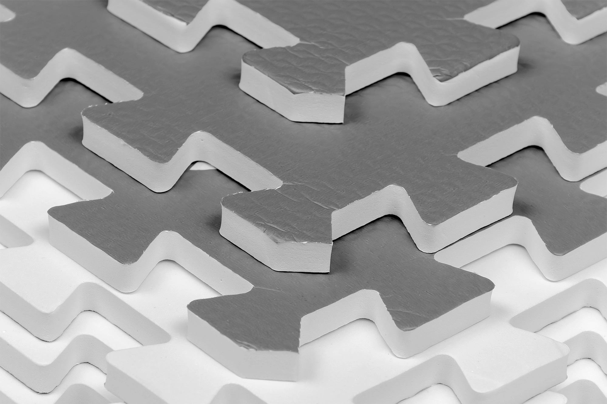Piesele modulare de puzzle 60 × 60 cm se conectează ușor într-o suprafață mai mare sau pot forma structuri spațiale (de ex. un cub), stimulând imaginația copiilor. Materialul EVA este impermeabil și igienic – este suficientă o ștergere cu o cârpă umedă, nu reține praful sau acarienii.