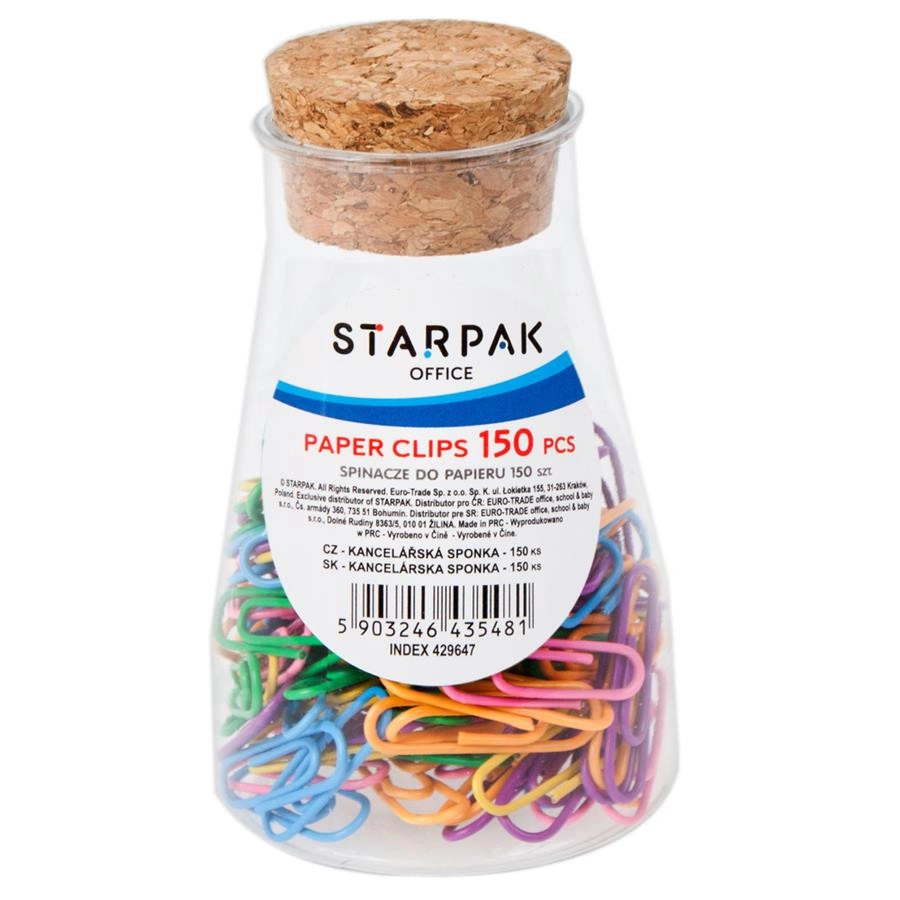 Set practic de agrafe de birou în culori vii pentru organizarea clară a documentelor. Pachetul conține 150 de bucăți într-un borcan stilat cu dop de plută. Ideal pentru birou, școală și acasă, rezistente și reutilizabile.