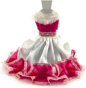 Conținutul pachetului: rochie în punga stilată cu dimensiunile 27x30 cm. Cadou ideal pentru fiecare mică prințesă care iubește să creeze și să îmbrace păpușa sa.