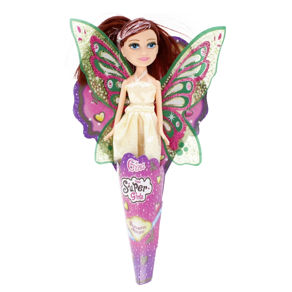 Aripile mari decorative oferă păpușii un aspect de poveste și o transformă în vedeta fiecărui joc.