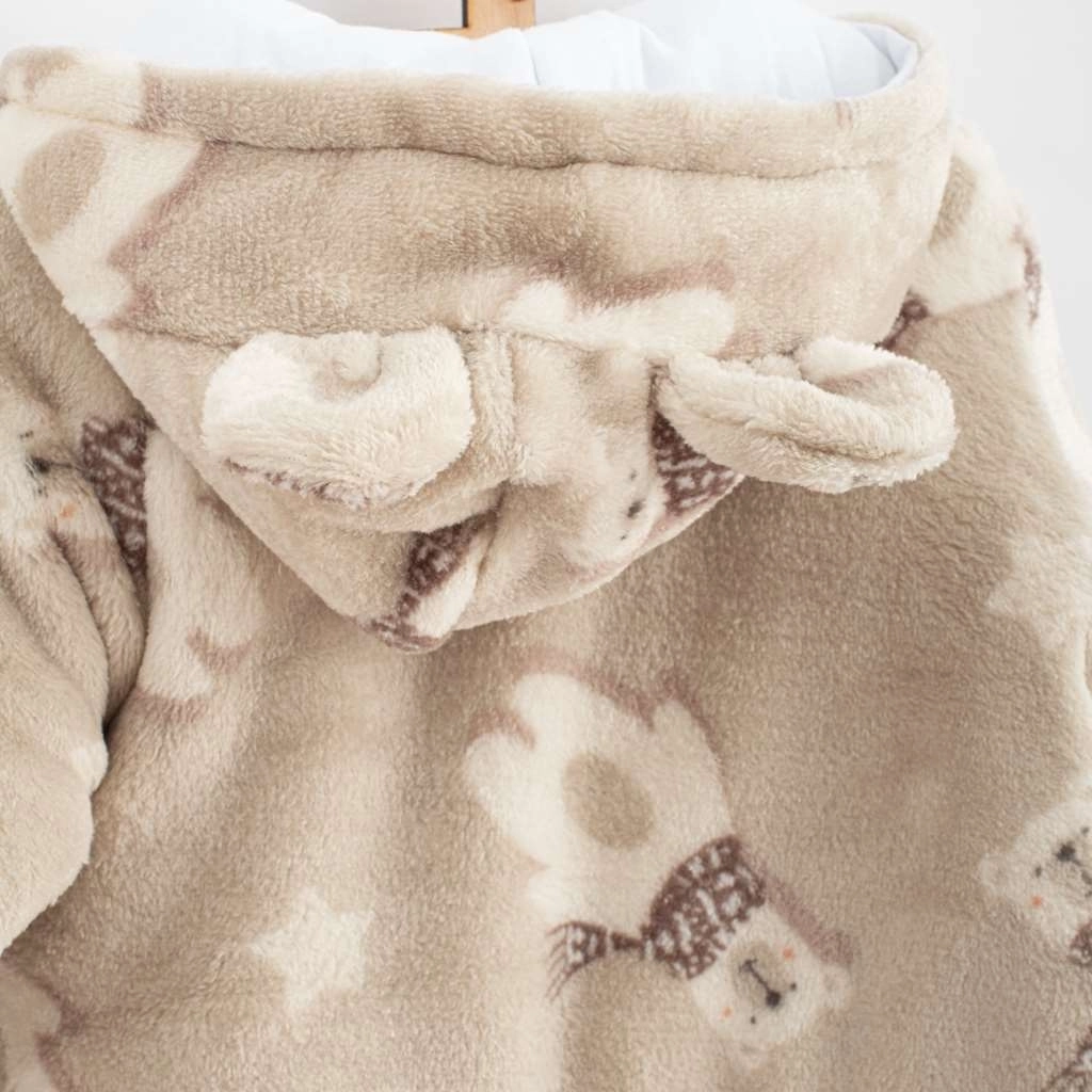 Descoperă confortul și căldura salopetei de iarnă NEW BABY Polar Bear. Wellsoft-ul catifelat încălzește plăcut, în timp ce căptușeala netedă și respirabilă din bumbac sporește confortul la purtare. Ursulețul simpatic și gluga cu urechiușe adaugă un plus de farmec ținutelor, nu doar la plimbările în vreme rece.