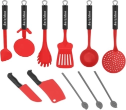 Acest set versatil pentru micii bucătari imită excelent ustensilele și electrocasnicele reale de bucătărie. Datorită selecției gândite de piese, copiii pot învăța cum să pregătească „bunătăți” și, în același timp, să își dezvolte motricitatea fină, imaginația și cooperarea în jocul împreună cu părinții sau frații. Combinația elegantă de negru, gri și roșu intens are un aspect modern și este potrivită atât pentru fete, cât și pentru băieți.