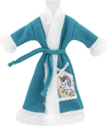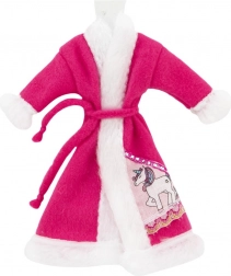 Halat stilat pentru păpuși, cu suprafață catifelată și curea de legare, care încălzește după baie și în timpul rutinelor de seară. Disponibil în mix de culori și motive (ex. unicorn), se combină ușor cu alte hăinuțe.