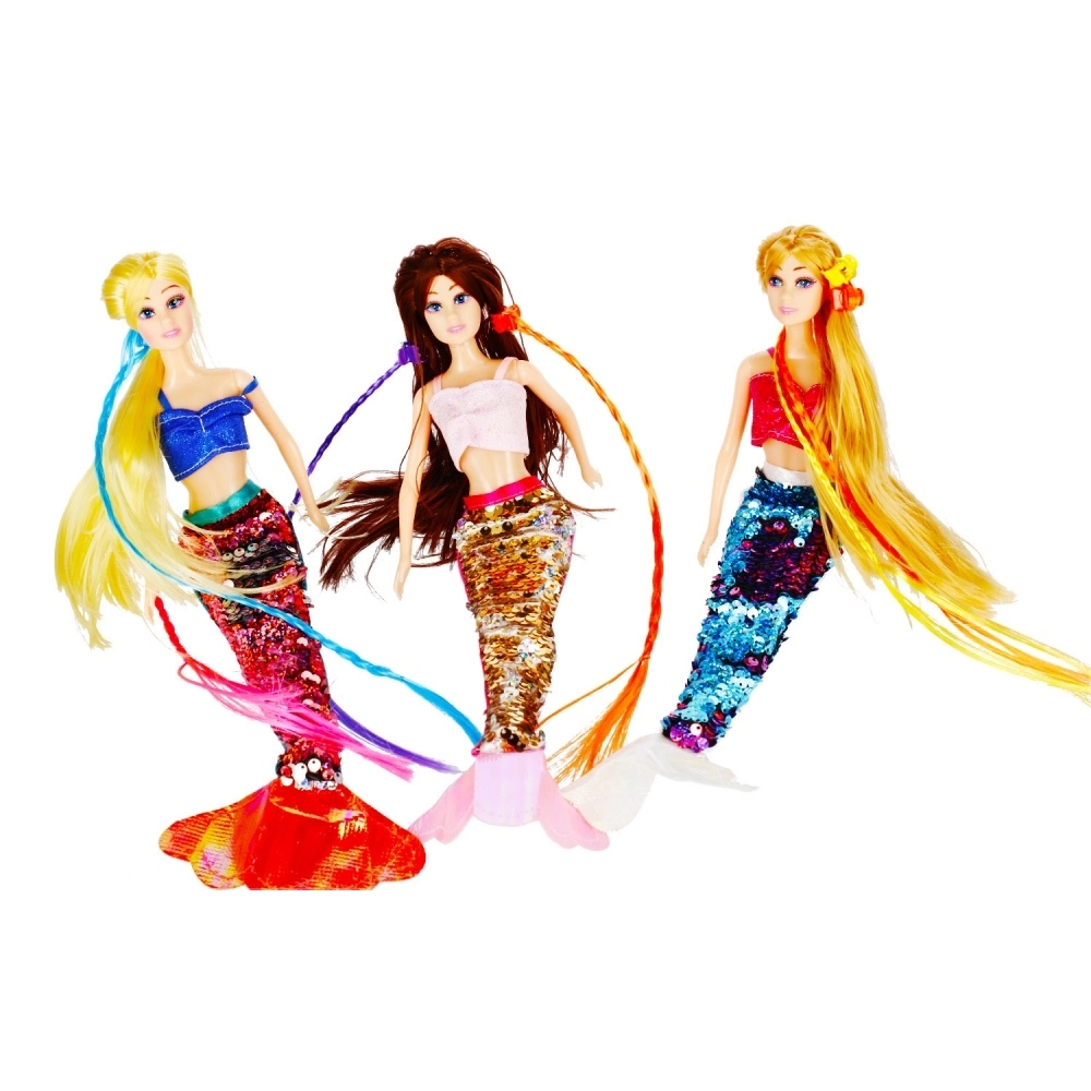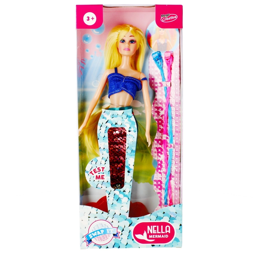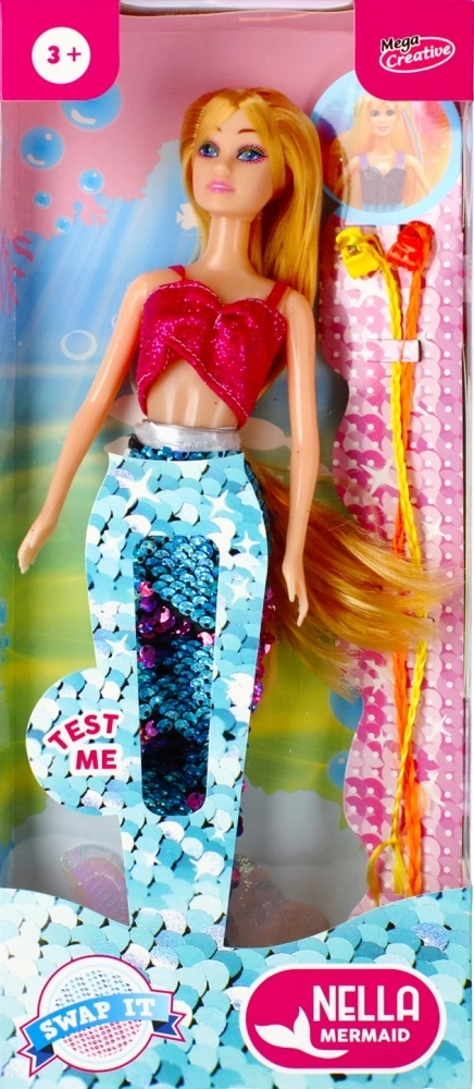Păpușa este disponibilă în mai multe variante de culoare (auriu-roz, albastru-roz, mov și alb), astfel încât fiecare copil își poate găsi sirena preferată. Pachetul include 2 codițe suplimentare și accesorii de coafat, care susțin motricitatea fină, creativitatea și jocul de rol.