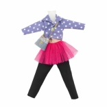 Hainele sunt realizate din materiale textile de calitate care asigură durabilitate și o viață lungă. Se pot spăla la 30°C, ceea ce le face ușor de întreținut. Acest set este potrivit pentru copii de la 3 ani care se bucură să se joace cu păpușile și au un simț pentru modă.