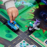 La finalul jocului, covorașul se transformă în câteva clipe într-o cutie de depozitare stabilă de 25,4 × 25,4 × 25,4 cm, în care încap mașinuțele și figurinele. În pachet găsiți și vehiculul Chase Rescue Racer și vehiculul exclusiv Vee Rescue Racer, astfel că puteți porni la drum imediat după despachetare.