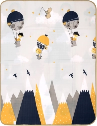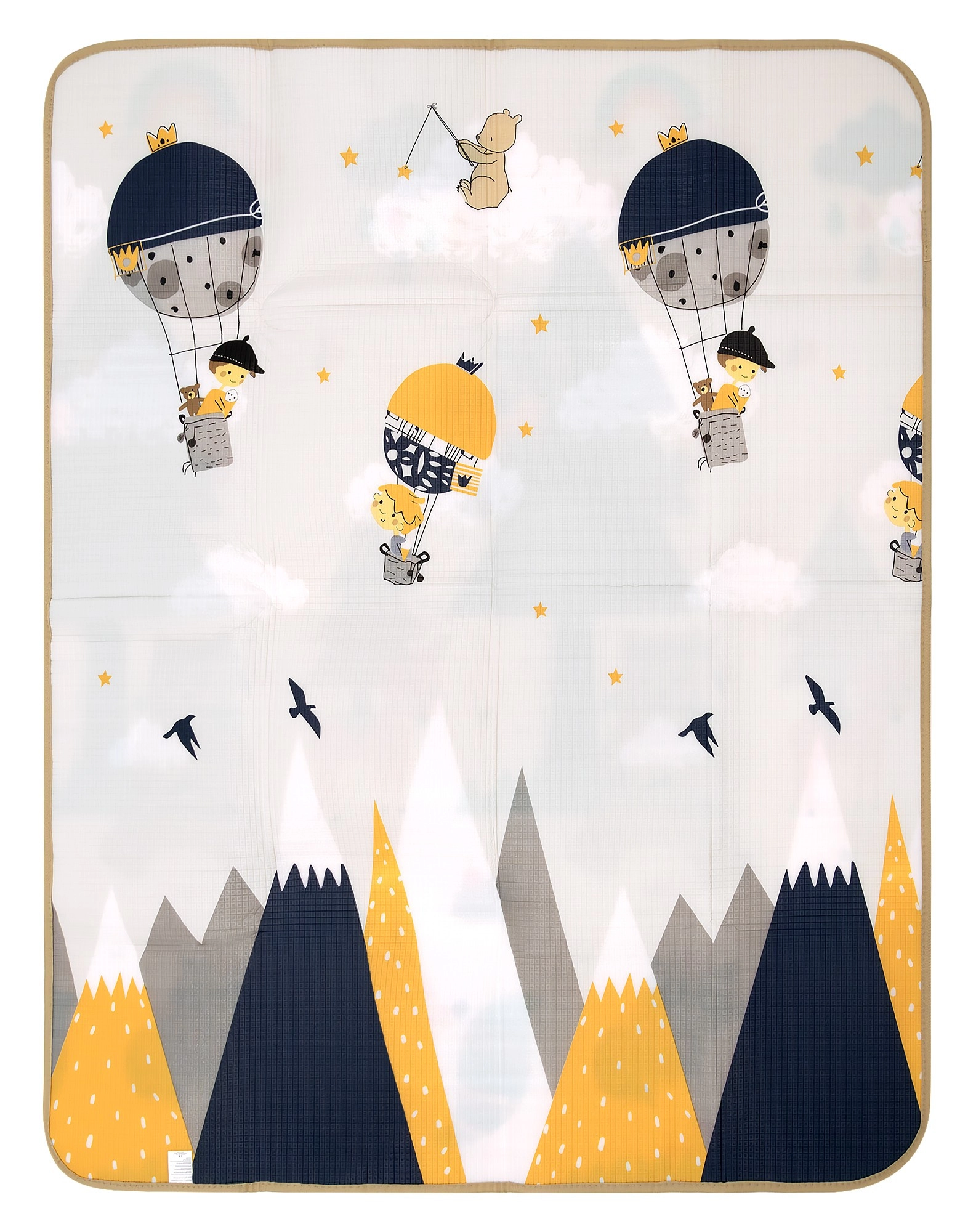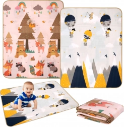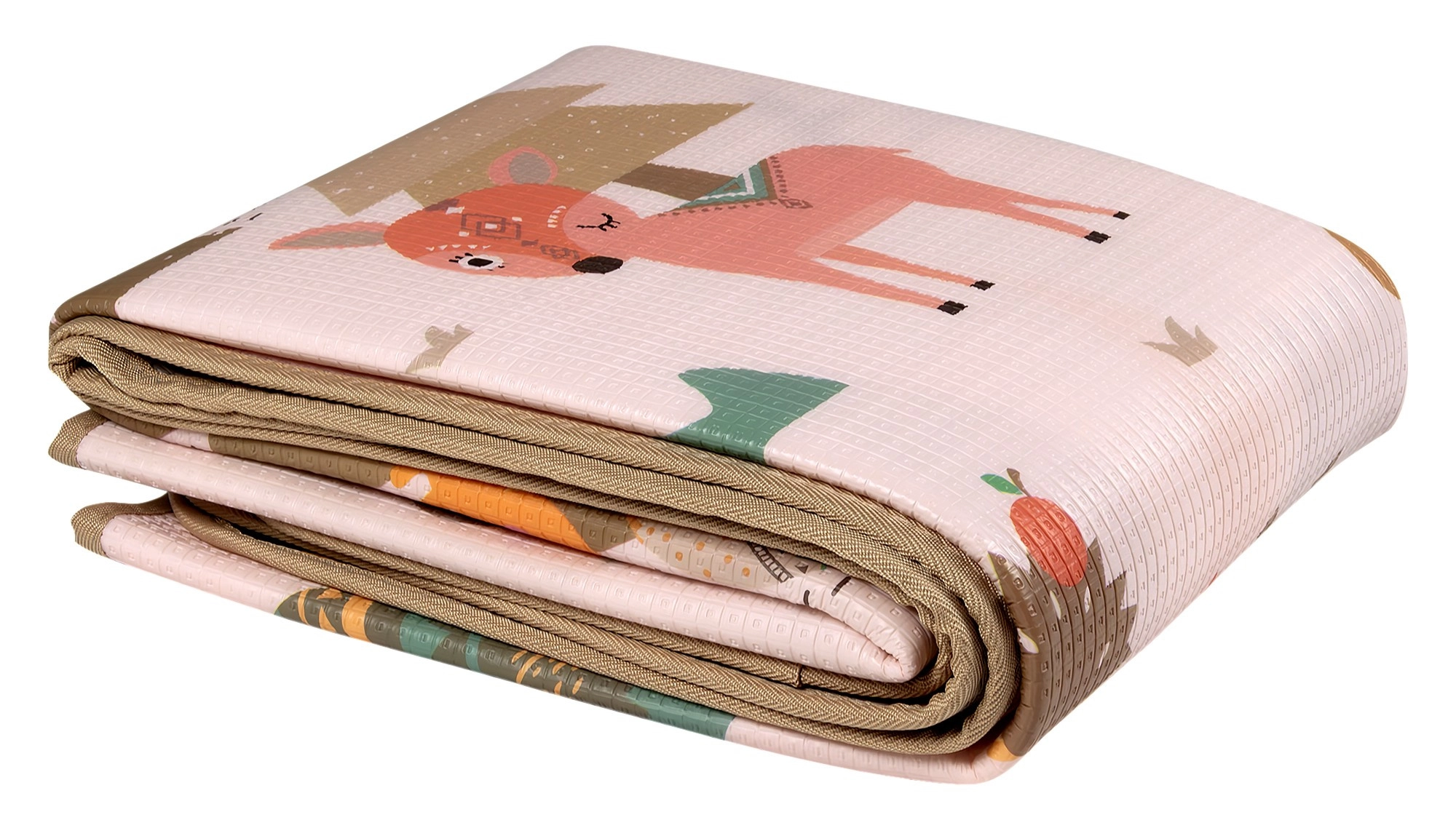 Materialul practic este rezistent la apă și ușor de curățat – este suficient să ștergeți cu o cârpă umedă. Covorașul poate fi folosit în interior și pe suprafețe exterioare netede. După pliere ocupă foarte puțin spațiu, astfel încât îl puteți depozita ușor sub pătuț sau între mobilier. Include geantă de transport cu fermoar și mânere pentru purtare curată și confortabilă.