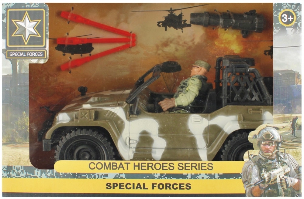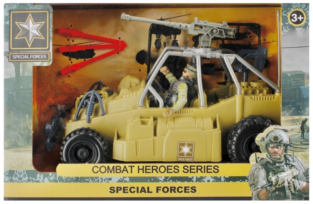 Include arme și accesorii care pot fi montate pe mașină, pentru ca cei mici să poată crea propriile povești de operațiuni speciale.