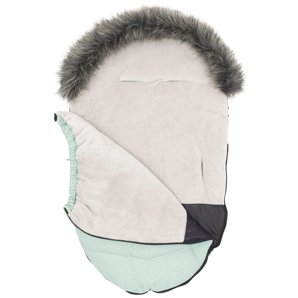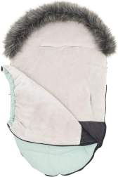 Căptușeala interioară moale și călduroasă asigură un microclimat plăcut și termoreglare corespunzătoare. Gluga cu blană artificială elegantă este reglabilă, iar blana se poate îndepărta după nevoie. După desprinderea părții superioare, sacul poate fi folosit ca căptușeală caldă pentru cărucior, crescând practicitatea lui în condiții meteo schimbătoare.