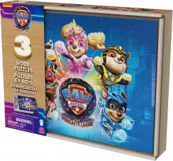Descoperă distracția pentru micii fani PAW PATROL cu aceste puzzle-uri din lemn de înaltă calitate. Setul conține 3 imagini diferite din filmul The Mighty Movie, fiecare cu 24 de piese, depozitate într-o practică cutie din lemn. Puzzle-urile au motive expresive și colorate cu eroii preferați și sunt ideale pentru dezvoltarea motricității fine, logicii și concentrării copiilor de la 3 ani.