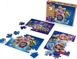 Acest set de puzzle-uri din lemn aduce aventura din filmul PAW PATROL The Mighty Movie direct în camera copilului. Fiecare dintre cele trei motive prezintă personaje îndrăgite în misiuni eroice, iar datorită pieselor solide din lemn se potrivesc perfect în mâinile copiilor. Imaginile sunt clare, intens colorate și, după asamblare, au dimensiunea de 27,9 × 20,8 cm.