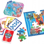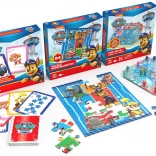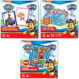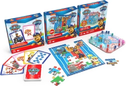 Setul 3-în-1 cu tematica PAW PATROL aduce ore întregi de distracție pentru micii fani ai cățelușilor preferați. Copiii pot asambla puzzle-ul (24 de piese), pot concura în jocul pop-up cu zar sub cupola transparentă și își pot antrena memoria și atenția cu cărțile jumbo cu ilustrații mari ale eroilor.